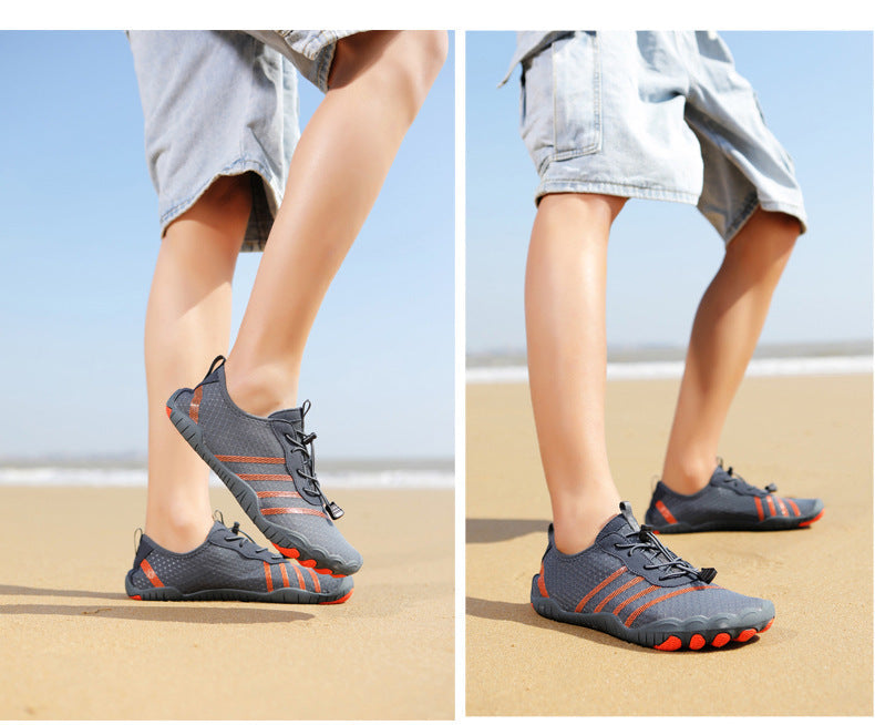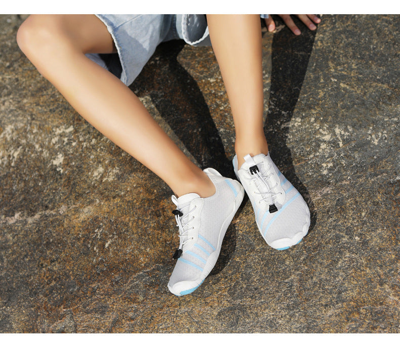 Upptäck våra barfotaskor, utformade för att respektera fotens naturliga rörelse och ge en känsla av frihet vid varje steg.