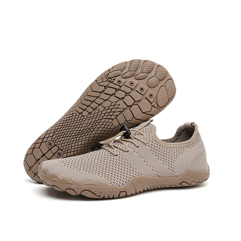 Upptäck våra barfotaskor, utformade för att respektera fotens naturliga rörelse och ge en känsla av frihet vid varje steg.