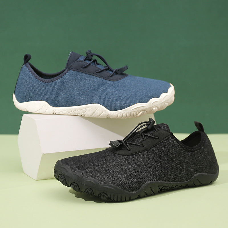 Upptäck våra barfotaskor, utformade för att respektera fotens naturliga rörelse och ge en känsla av frihet vid varje steg.