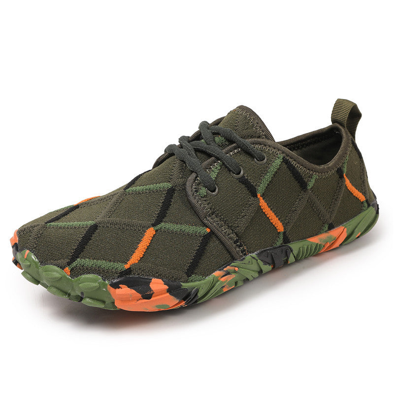 Upptäck våra barfotaskor, utformade för att respektera fotens naturliga rörelse och ge en känsla av frihet vid varje steg.